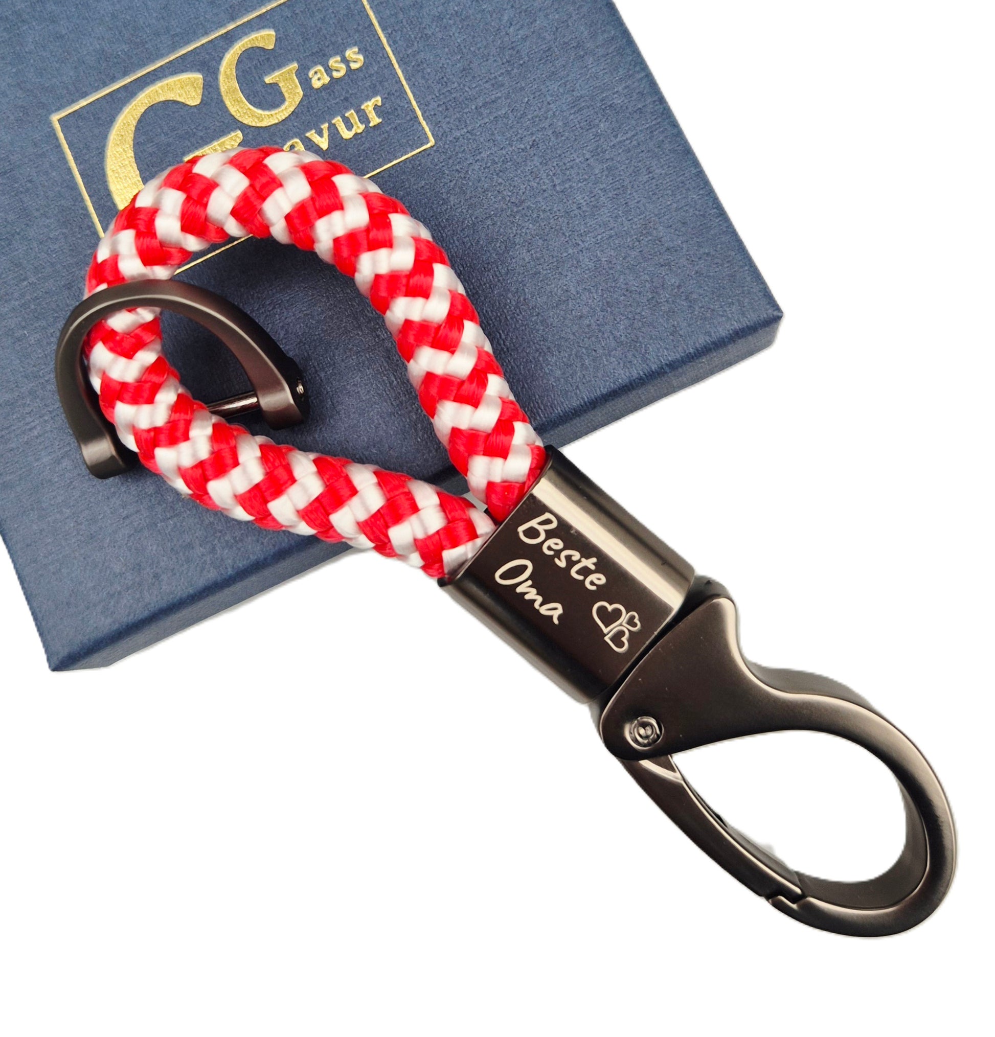 Schlüsselanhänger aus Segeltau (8mm) mit Karabiner, Schäkel und individueller Wunschgravur