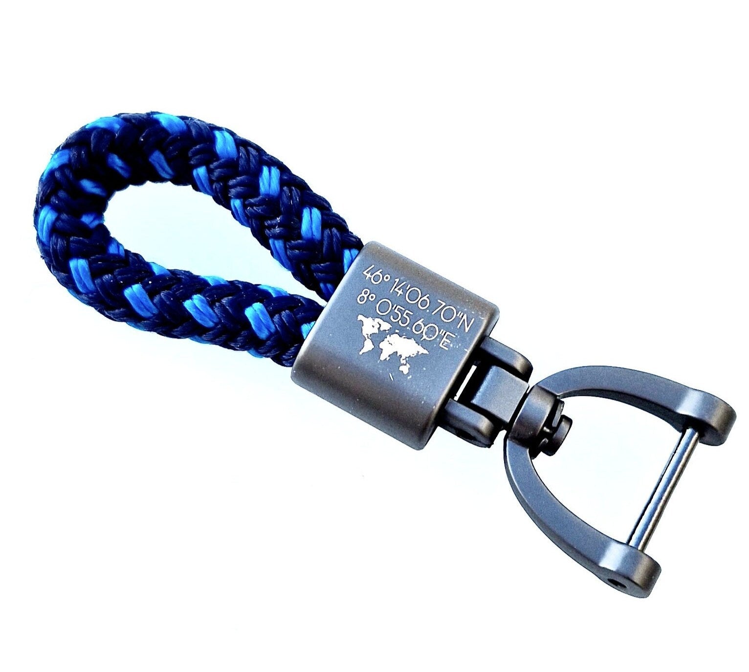 Schlüsselanhänger aus Segeltau (8mm) mit Schäkel und individueller Wunschgravur