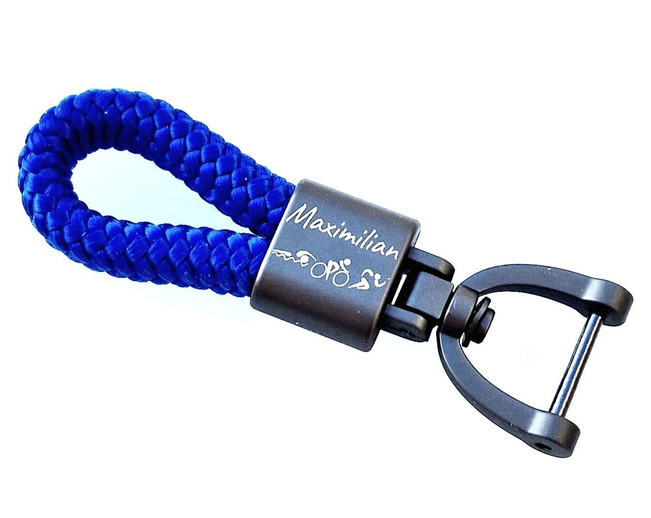 Schlüsselanhänger aus Segeltau (8mm) mit Schäkel und individueller Wunschgravur